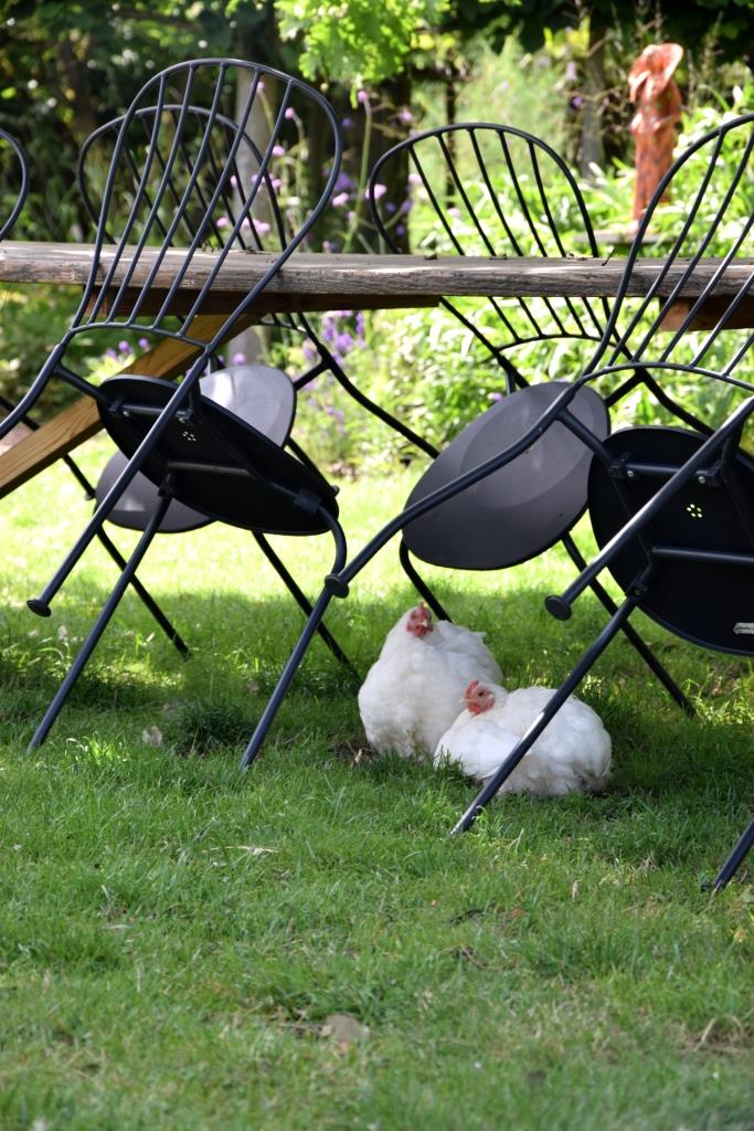Vorheriges Bild Nächstes Bild Zeeland Tipps Unterfreunden Blog Het Kaslokaal Oostkapelle (4) Freilaufende Hühner leisten uns Gesellschaft beim Kaffeetrinken im Het Kaslokaal in Zeeland