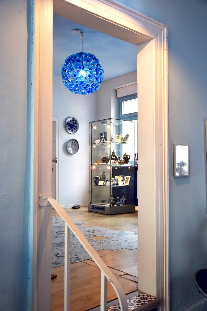Vorheriges Bild Nächstes Bild Alles so schön blau hier! Im Blau Museum Schwetzingen Wer keine blauen Lampen fürs Museum findet, baut sie eben selbst – ein Kronleuchter aus blauen PET-Flaschen!