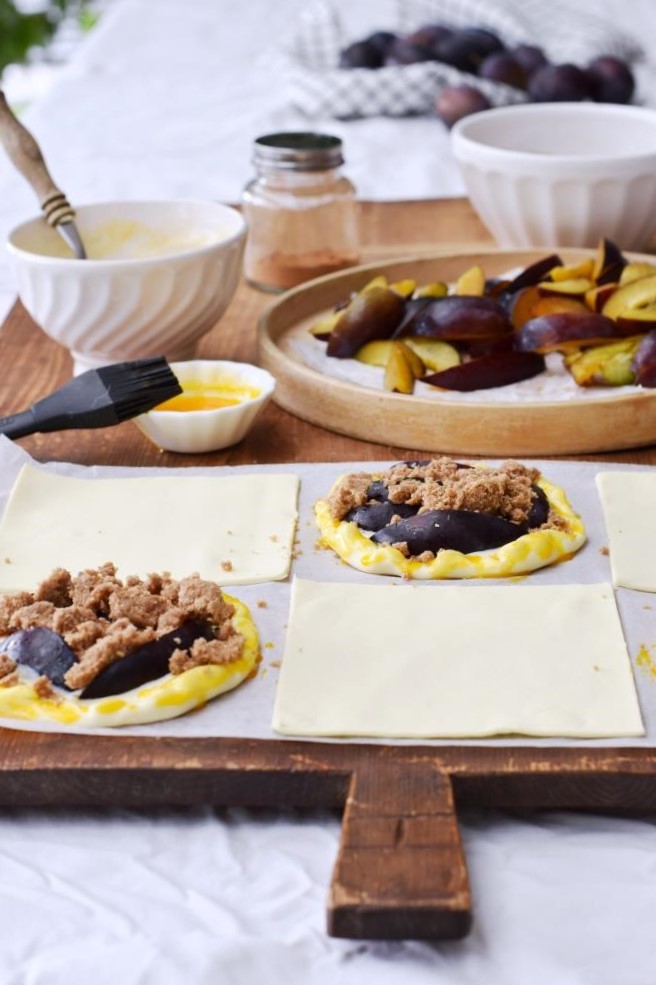 Vorheriges Bild Rezept schnelle Zwetschgenplunder – Unterfreundenblog Auf die fertigen Blätterteig Quadrate kommen jetzt Zwetschgen und Zimtstreusel – so einfach, schnell und lecker!