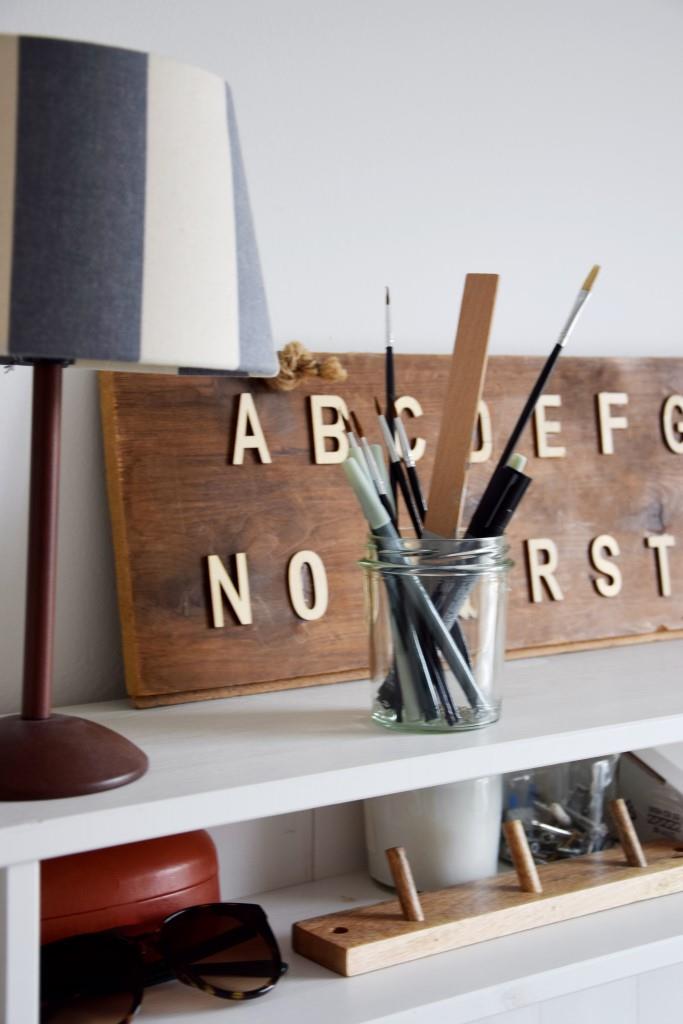 Vorheriges Bild Nächstes Bild Herbst im Holland-Haus – Renovierung unseres Ferienhauses in Holland – Unterfreunden Blog Ein Trödelfund: Altholz mit Holzbuchstaben als Deko fürs Büro im Ferienhaus / Holland-Häuschen