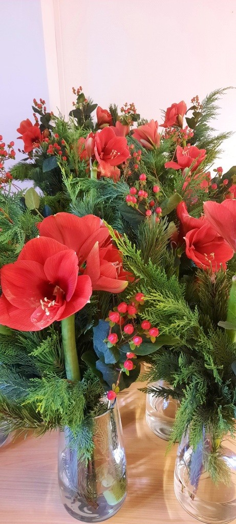 It’s beginning to look a lot like christmas – die schönen Amaryllis-Sträuße sind erst Tischdeko und dürfen am Ende des Abends von den Gästen mit nach Hause genommen werden.