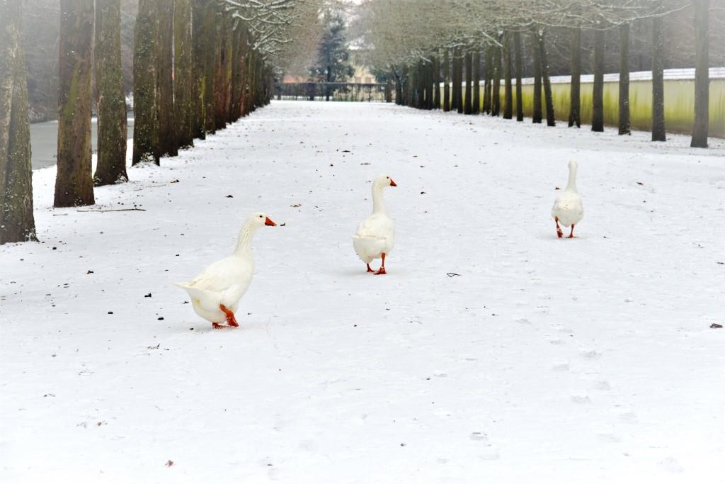 Schlosspark Schwetzingen Gänse Winter Schnee